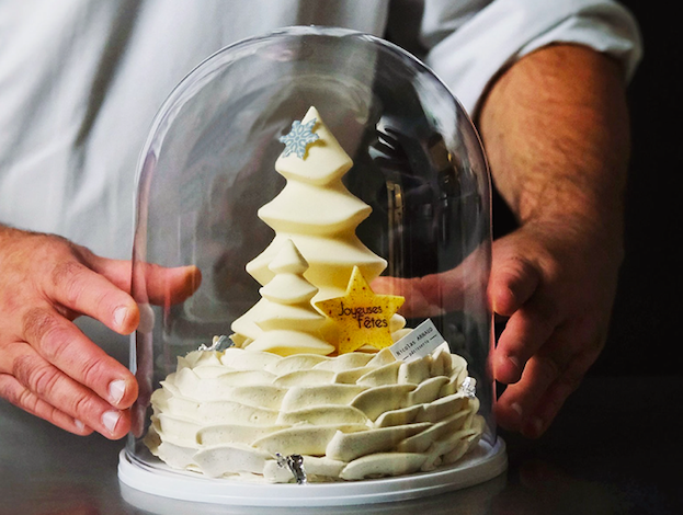 Pour terminer, de quoi vous faire saliver avec sa création Fleur d’Hiver : mousse à la vanille de Madagascar, crémeux au thé chaï, confit d'orange, biscuit madeleine à l'orange, ganache montée à l’orange et 2 sapins en chocolat blanc.