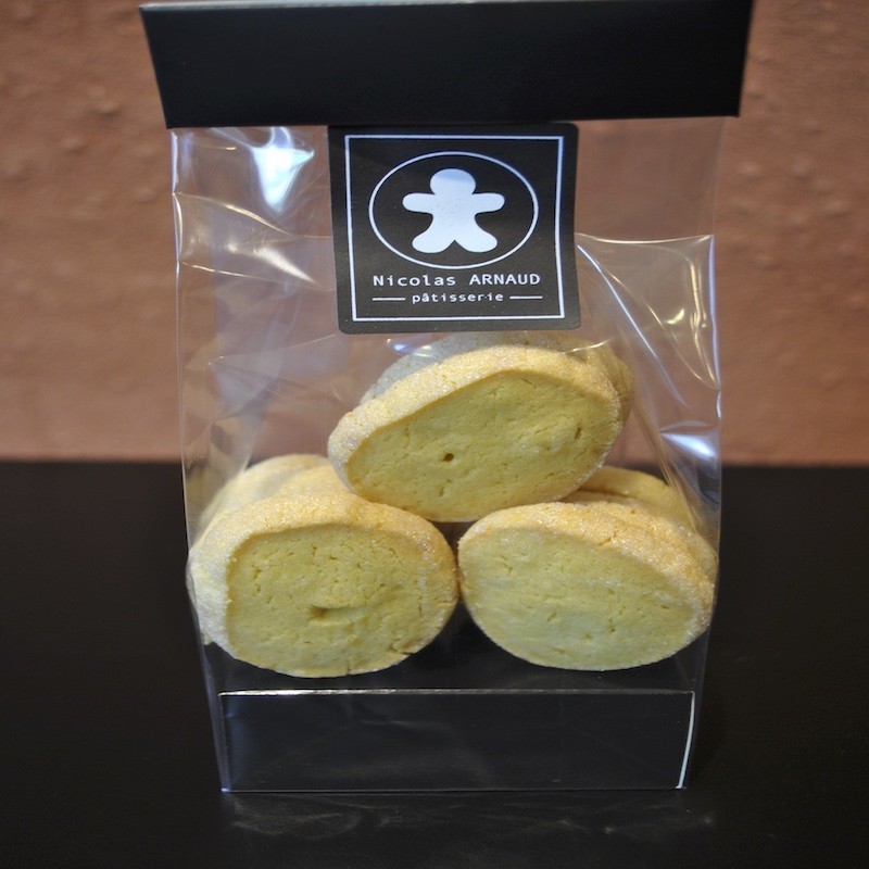 Shortbread vanille : farine de blé, beurre, sucre, gousse de vanille, sel. 100 g
