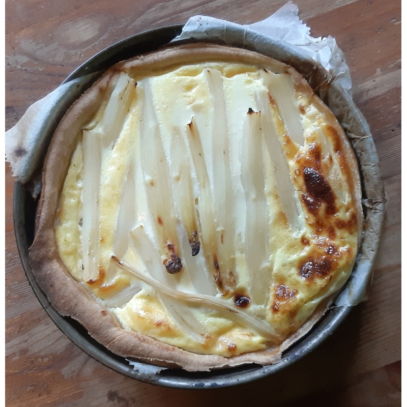 Ingrédients : Farine, beurre, eau, sel, poivre, oeufs, fromage de chèvre, asperges, emmental, crème, lait de chèvre.